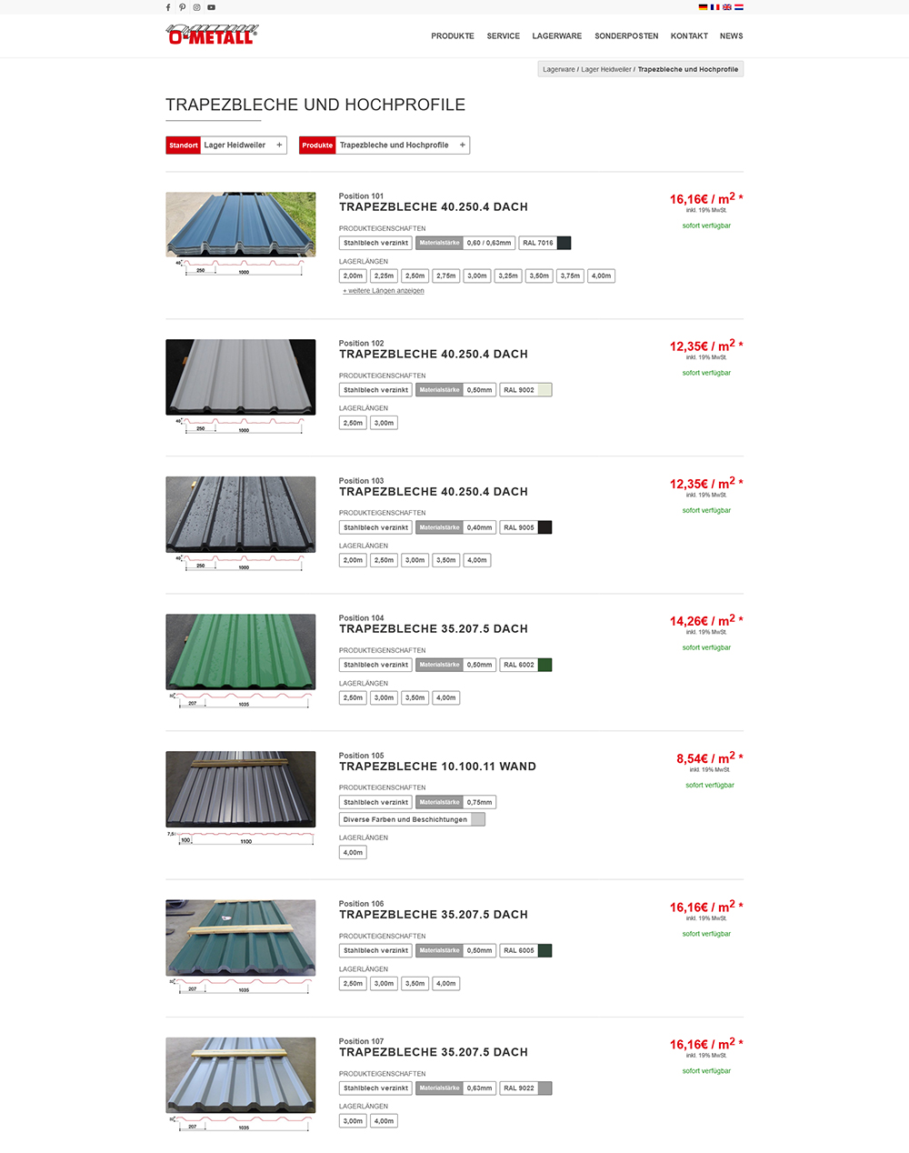 Wir haben für Sie unsere Lagerwarenübersicht um das Werk Heidweiler erweitert und im Zuge dessen das Design der gesamten Lagerwarenseite modernisiert. Alle relevanten Produkteigenschaften werden nun noch übersichtlicher dargestellt – egal ob auf dem Desktop oder auf dem Smartphone. Ansprechendes Design gepaart mit kundenfreundlicher Funktionalität unterstützt Sie noch effektiver bei der Auswahl unserer sofort verfügbaren Produkte.