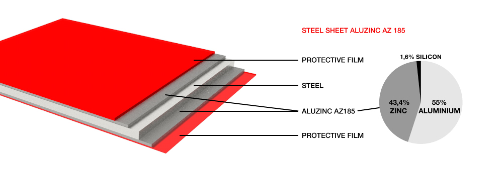 Many of our corrugated sheets and wave sheets are also available in aluminium. Most of our corrugated sheets, steeldecks, wave sheets, metal roof tiles and standing seam roofing system can be equipped with our high-quality Aqua-Therm® anti-condensation fleece.