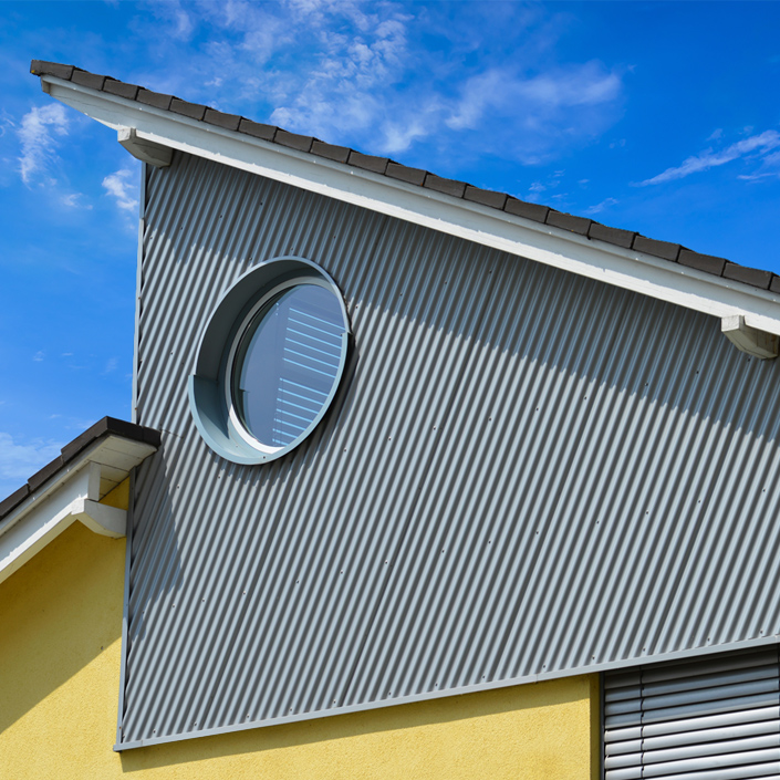 Dans les nouvelles constructions, notre ISO system ondulé 39 est par exemple de plus en plus utilisé comme revêtement de toiture et de mur. On voit aussi de plus en plus souvent la vague convaincre par son design et sa fonctionnalité sur les façades d’immeubles de bureaux, de halls industriels, mais aussi de maisons individuelles et d’immeubles collectifs. Grâce à sa forme ondulée et à l’absence de coins et d’arêtes, la vague ISO system ondulé 39 a en outre un très bon effet autonettoyant. La saleté et les dépôts peuvent être simplement rincés à l’eau de pluie.