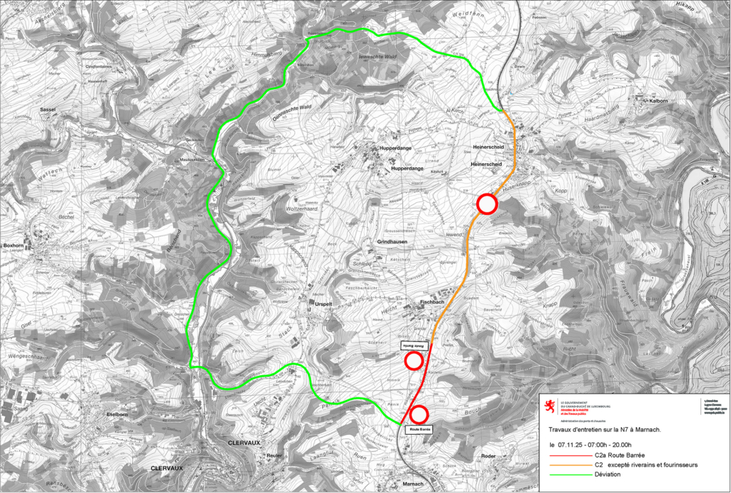 🚧 Wegwerkzaamheden op de N7 tussen Marnach en Fischbach